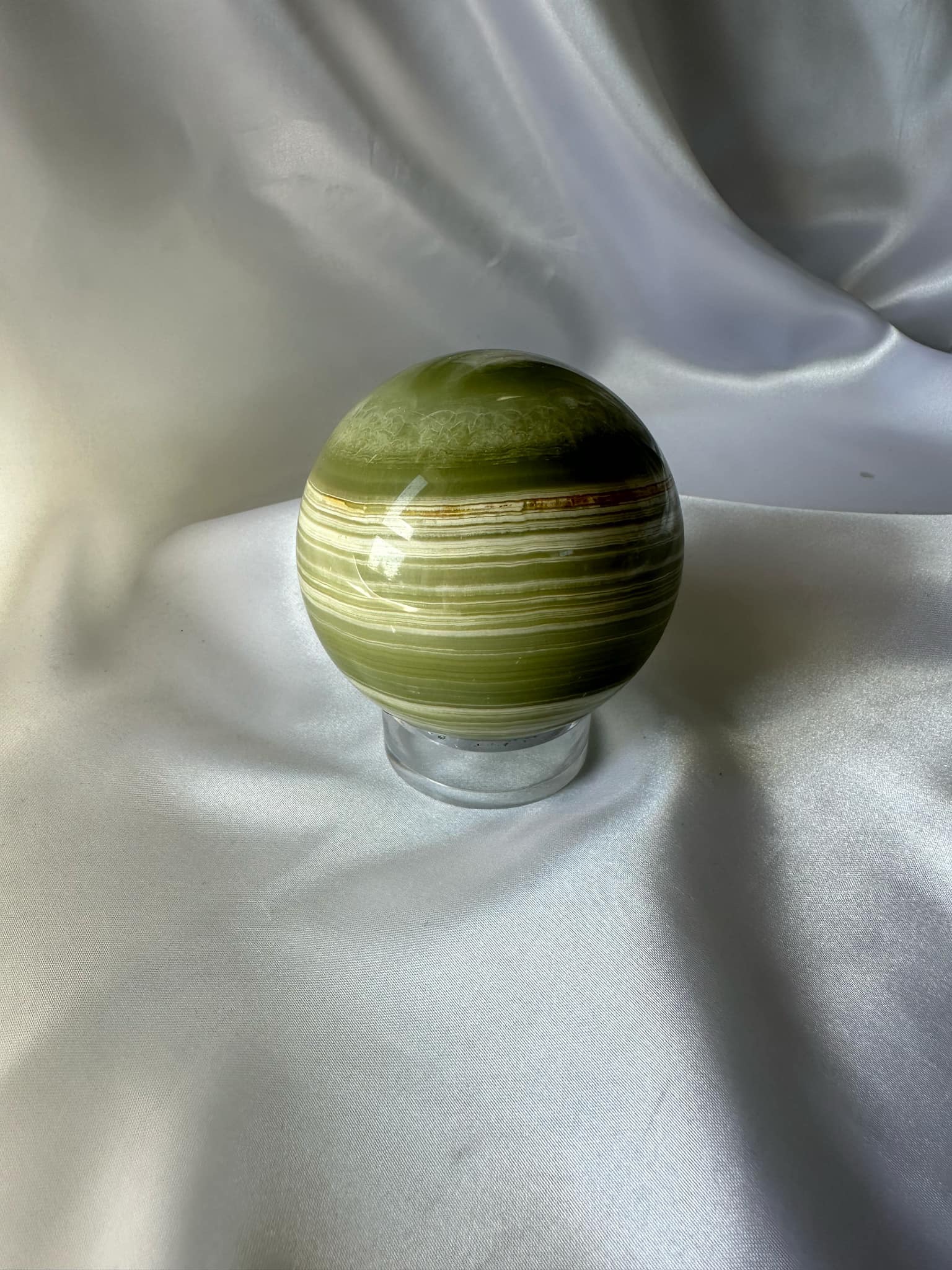 Afghan Jade Sphere wards off evil and creates a protective shield. It helps heal emotional wounds and promotes self-love and acceptance. It calms the nervous system and can be helpful for anxiety or stress.