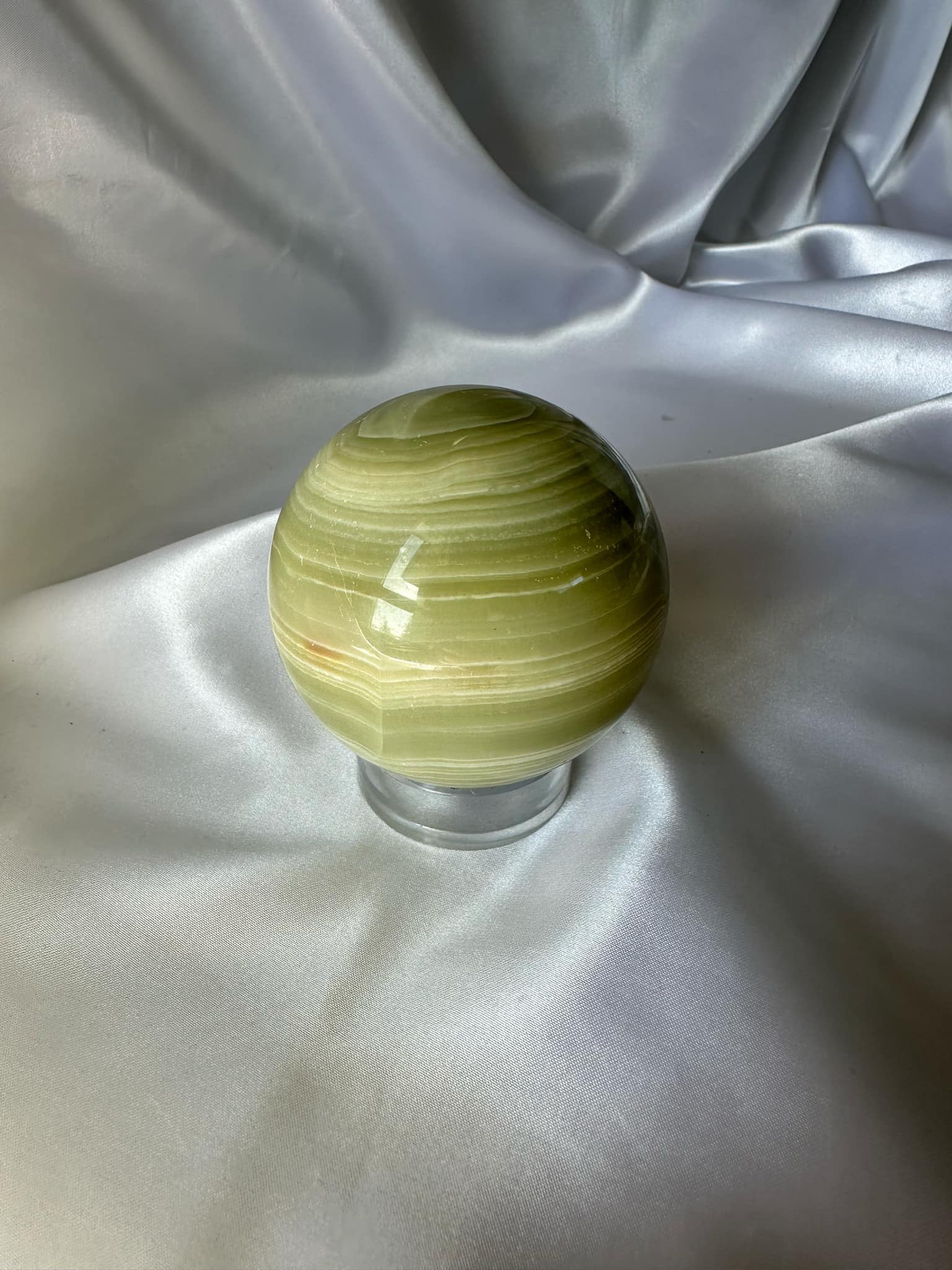 Afghan Jade Sphere wards off evil and creates a protective shield. It helps heal emotional wounds and promotes self-love and acceptance. It calms the nervous system and can be helpful for anxiety or stress.