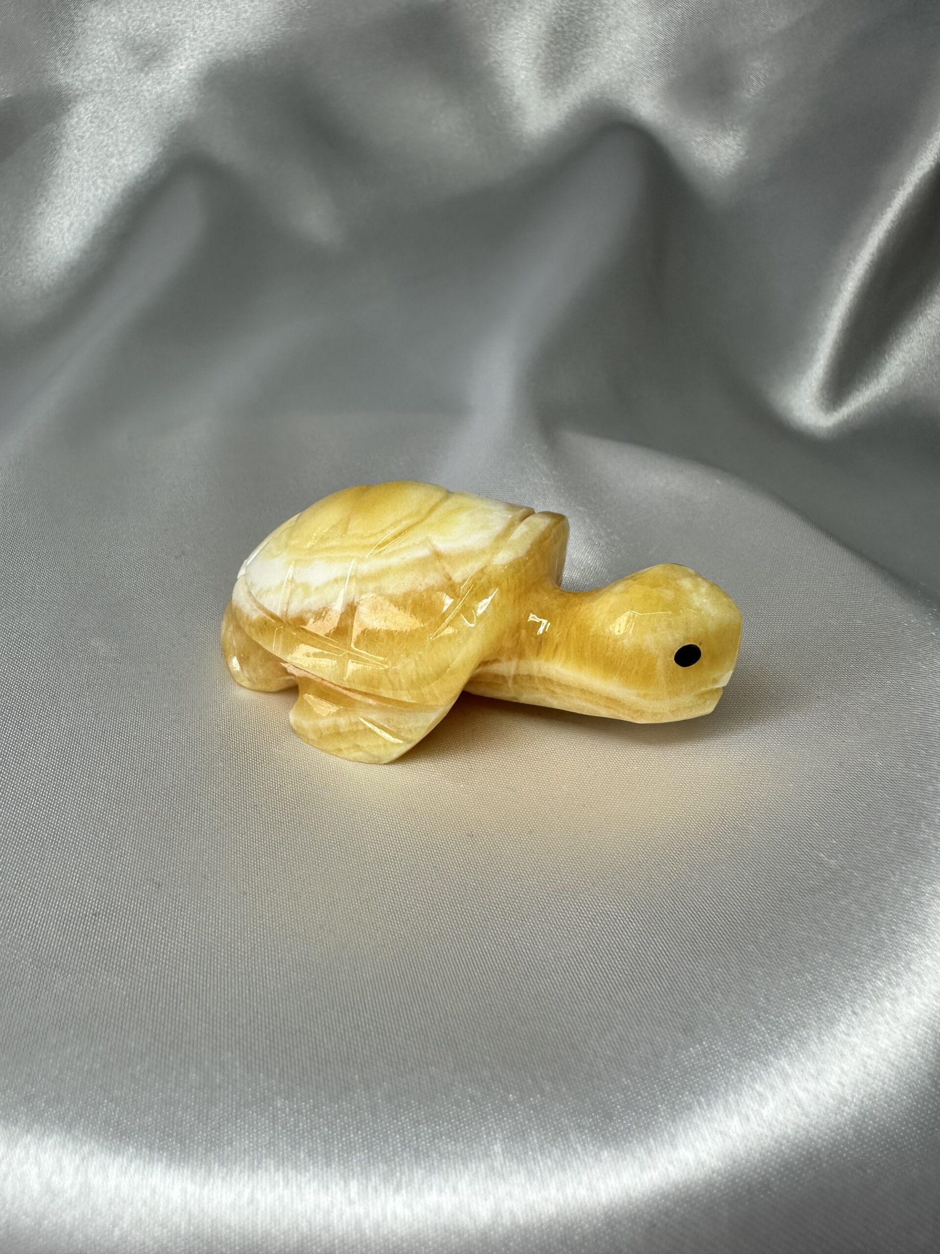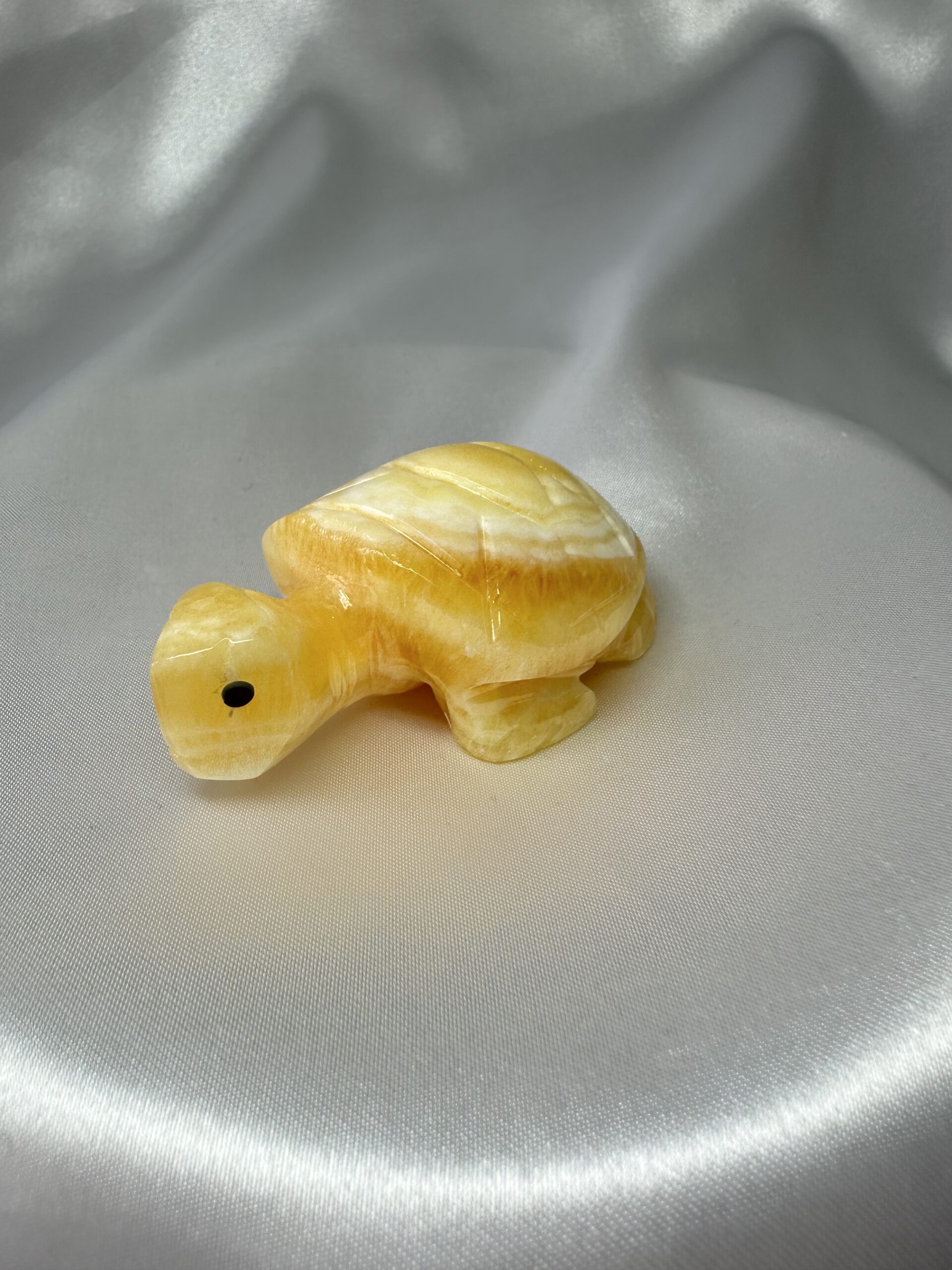 An Orange Calcite Turtle combines the cheerful energy of its vibrant colour with the turtles protection and wisdom, potentially boosting creativity and motivation while serving as a unique decorative piece.