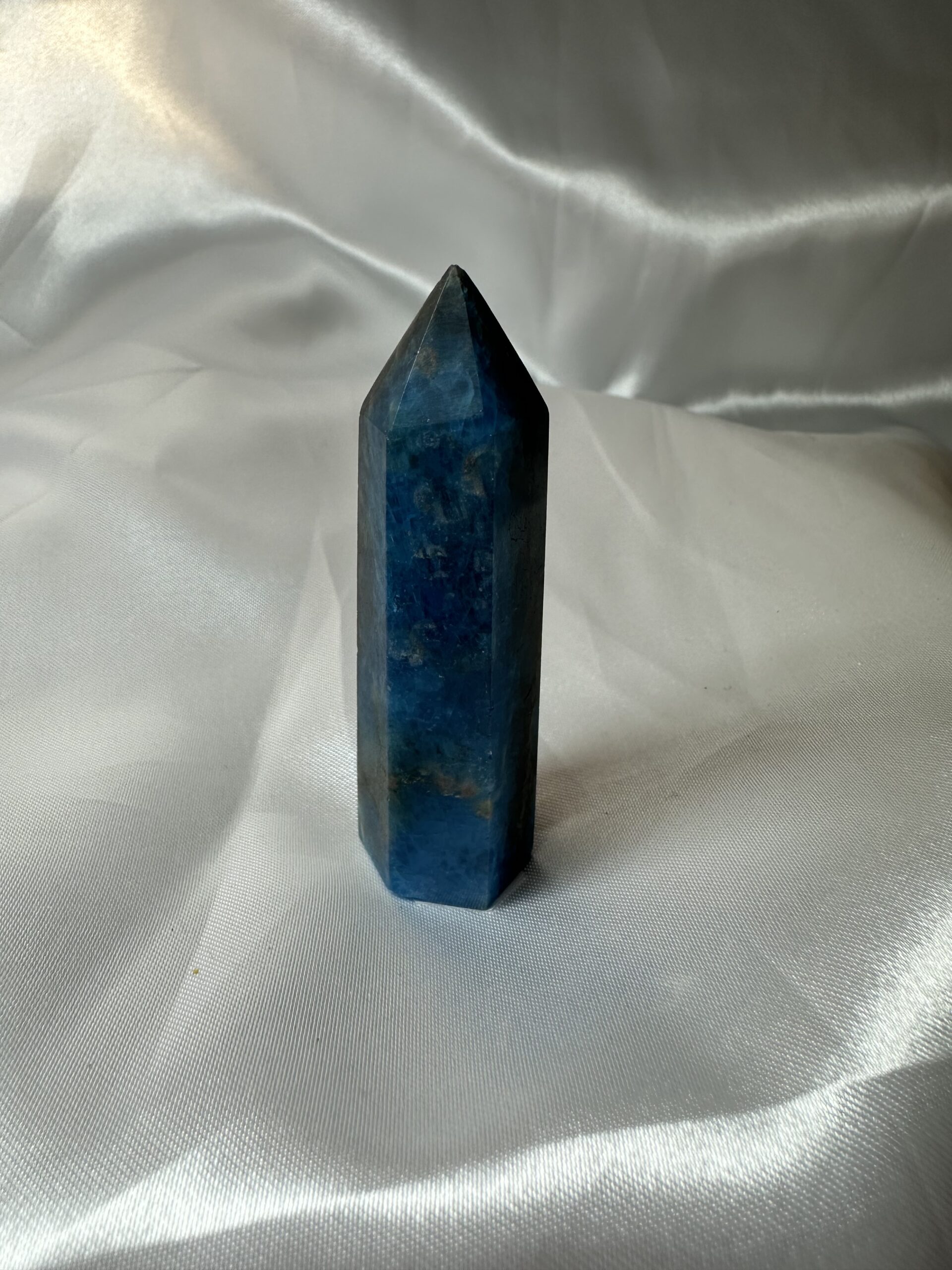 Blue Apatite Tower has the properties of preventing mental exhaustion and the restoration of peaceful balance. The enhancement of communication, self-acceptance, and spiritual growth. The promotion of a love of life, easy friendships, and positive thoughts.