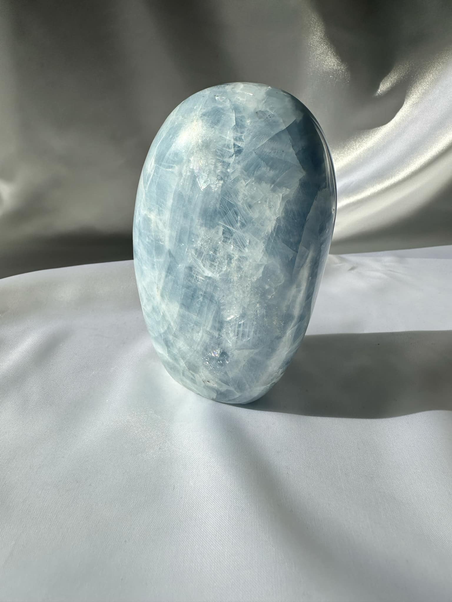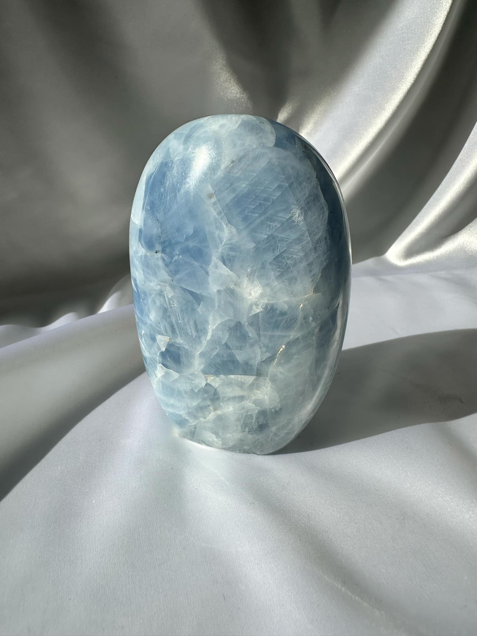 Blue Calcite Freeform offers emotional healing and stress reduction. It acts as a sponge, absorbing negative energy and transforming it into positive energy. This crystal enhances communication between thoughts and feelings. Stimulates creative energies and strengthens dream work.