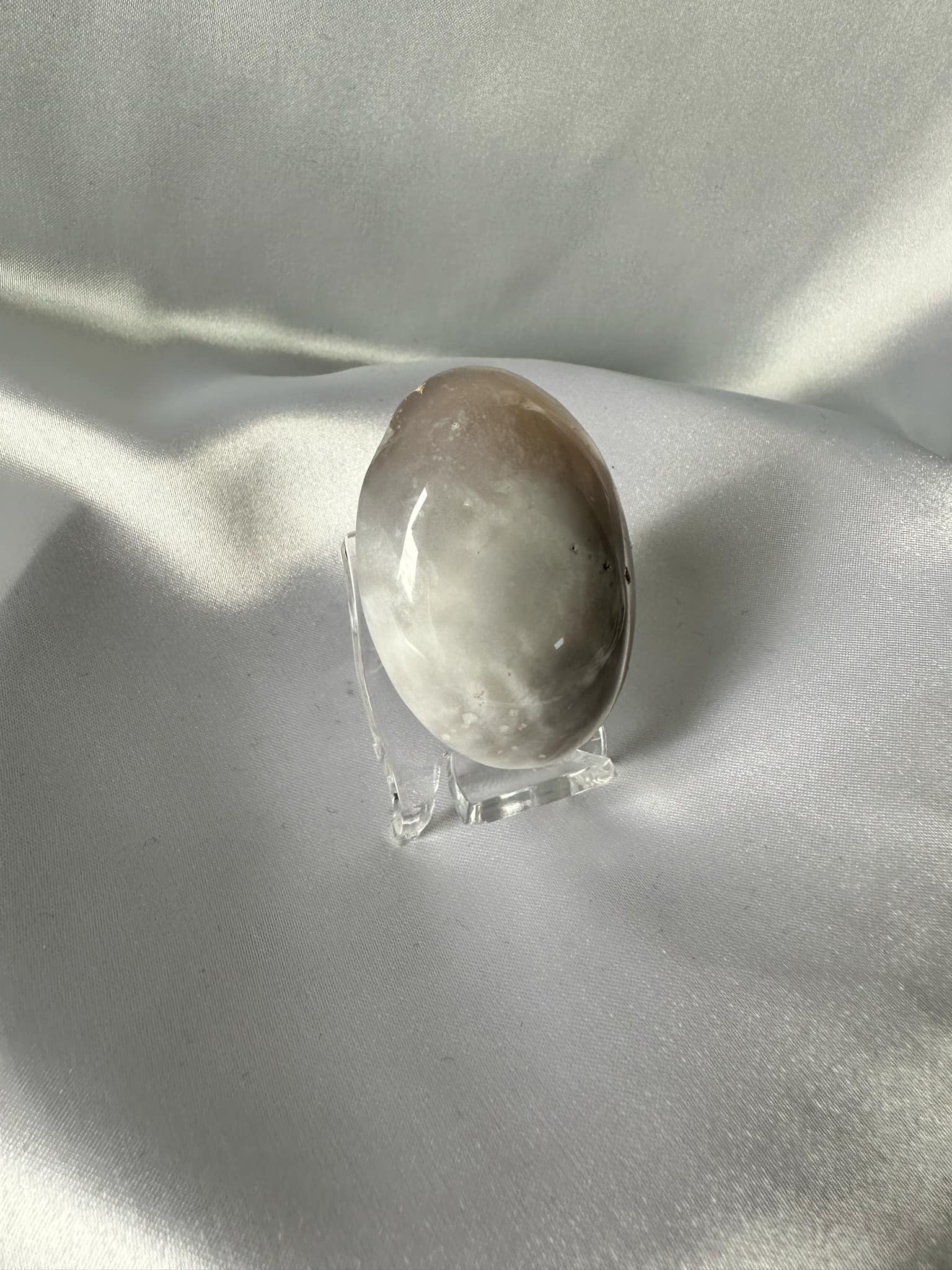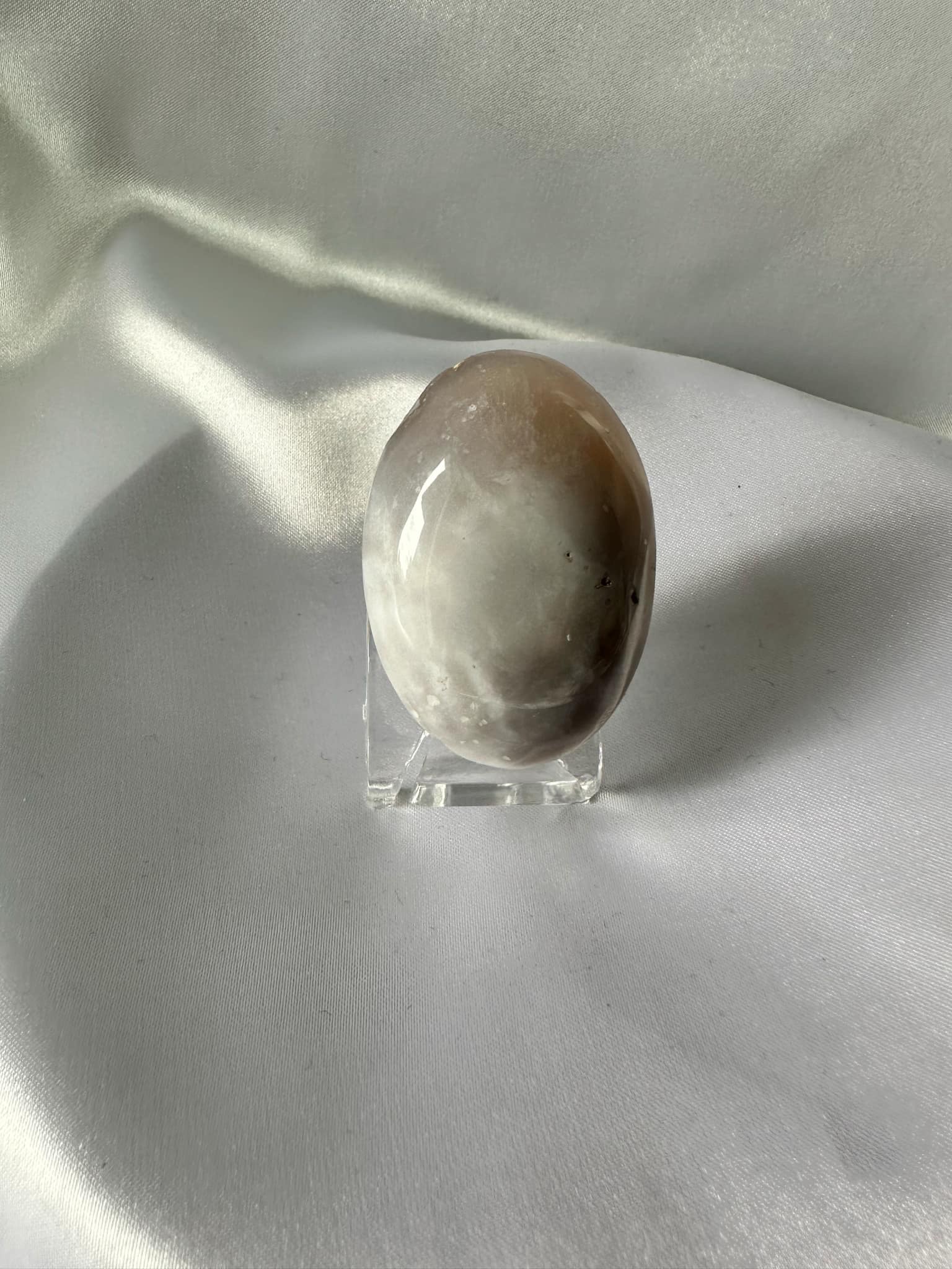 Nebula Agate Palmstone transforms negative energy into positive energy. Agate enhances mental function, improves concentration, enhances perception and analytical abilities. It is a soothing and calming gemstone that heals inner anger, anxiety and helps in the strengthening of relationships.