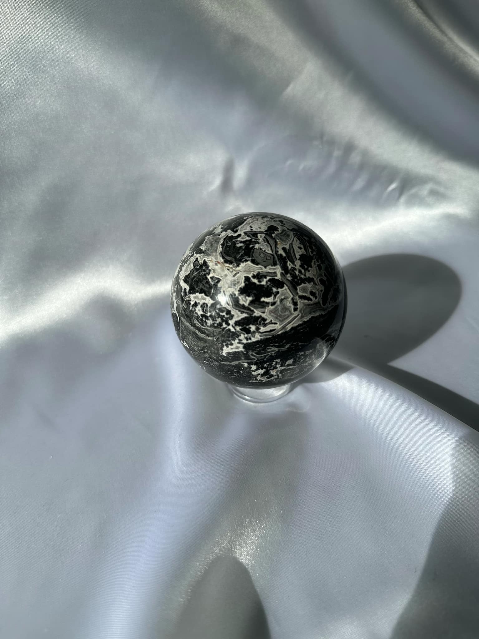 Picasso Jasper Sphere is said to make for an excellent meditation stone. Some people value Picasso Jasper for its ability to renew lost friendships or to help guide during relationship transitions. This stone is said to promote inner clarity and interpretation of one’s own thoughts.