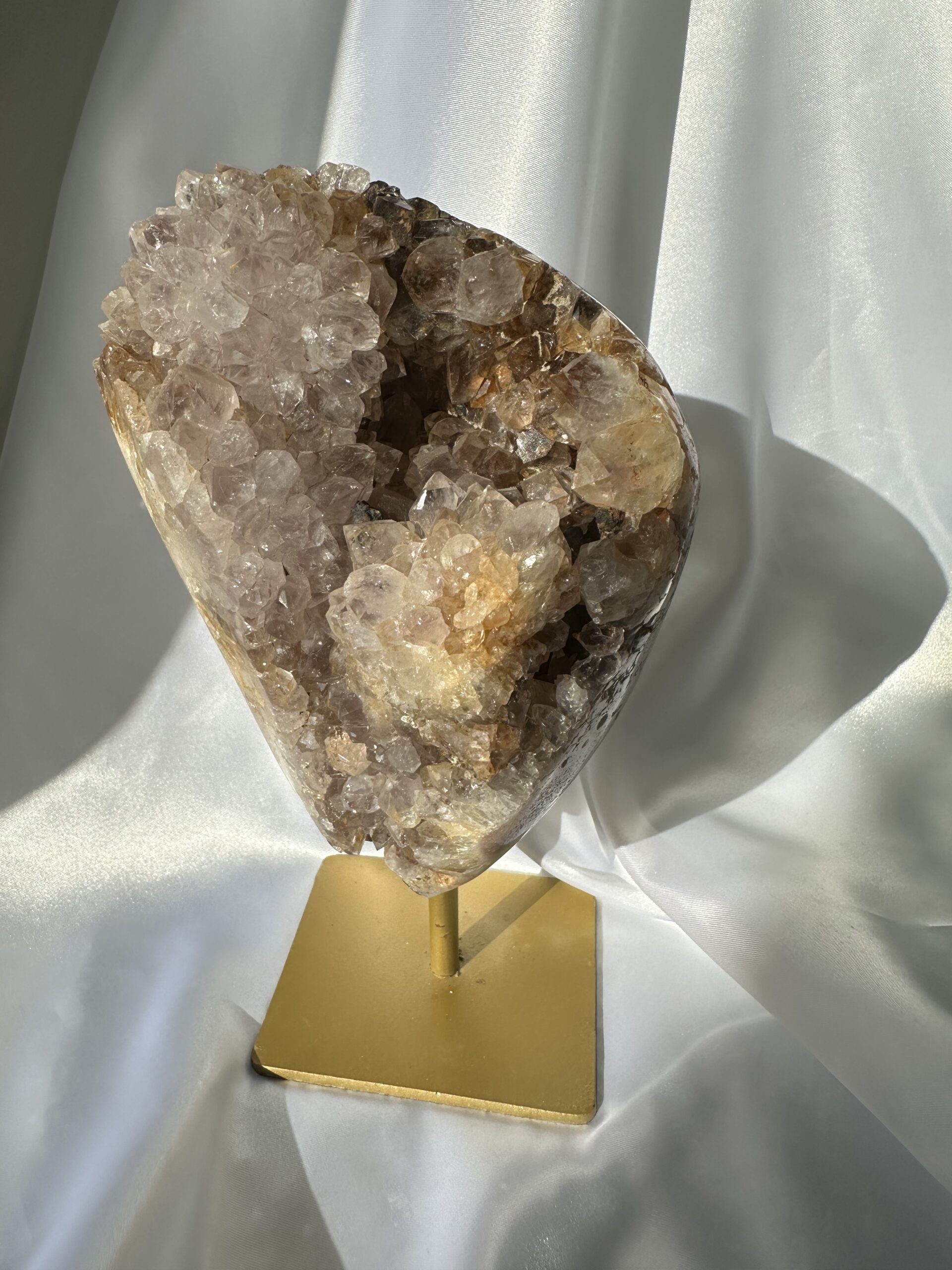 A Pink Amethyst Cluster captivates with its delicate rosy hue while offering the calming and protective properties associated with amethyst crystals.