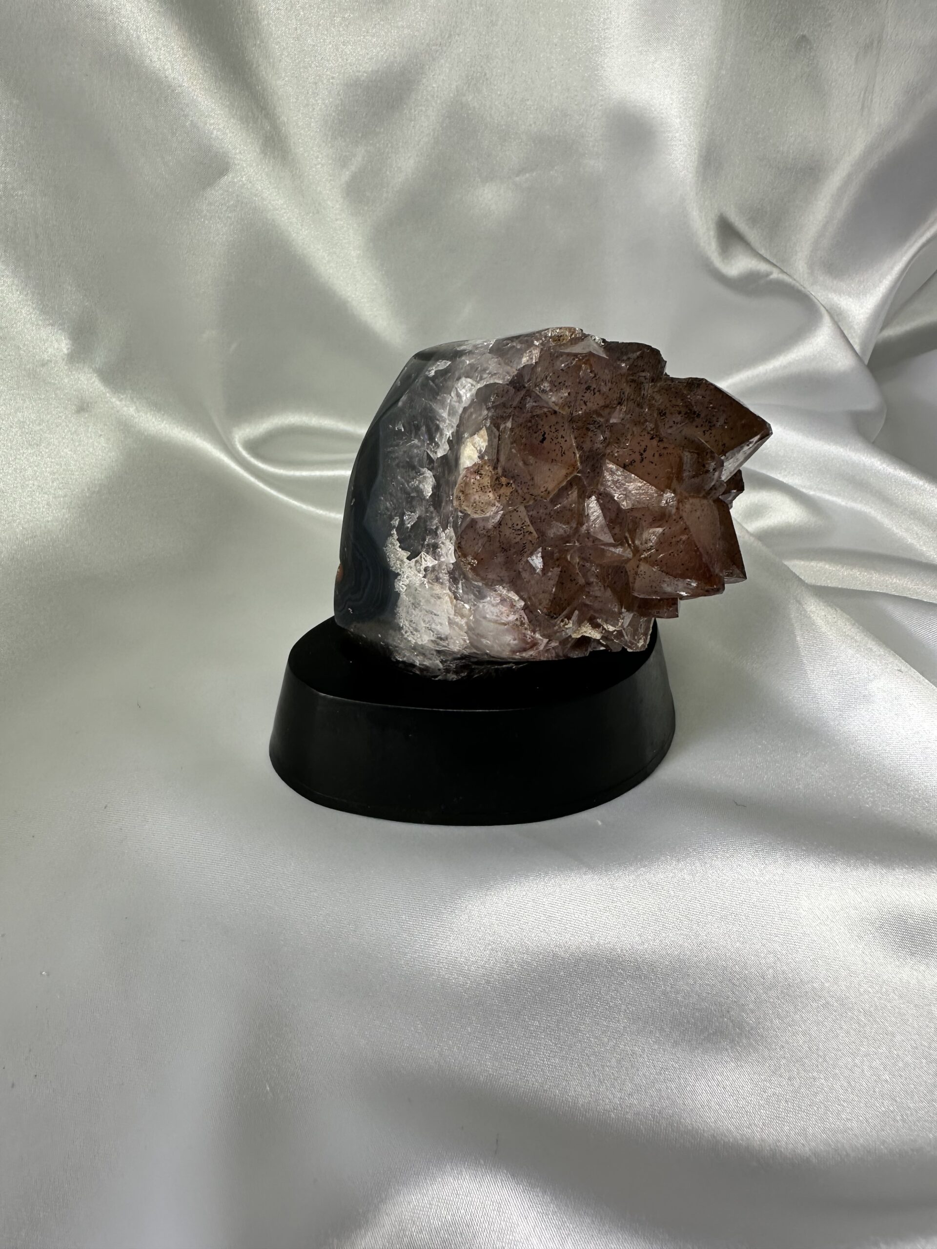 Red Amethyst Freeform brings the energy of courage, tenacity, inner strength, romance, and passion. Red Amethyst balances and heals the root and crown chakras and repairs damage to a wounded sense of self-worth.