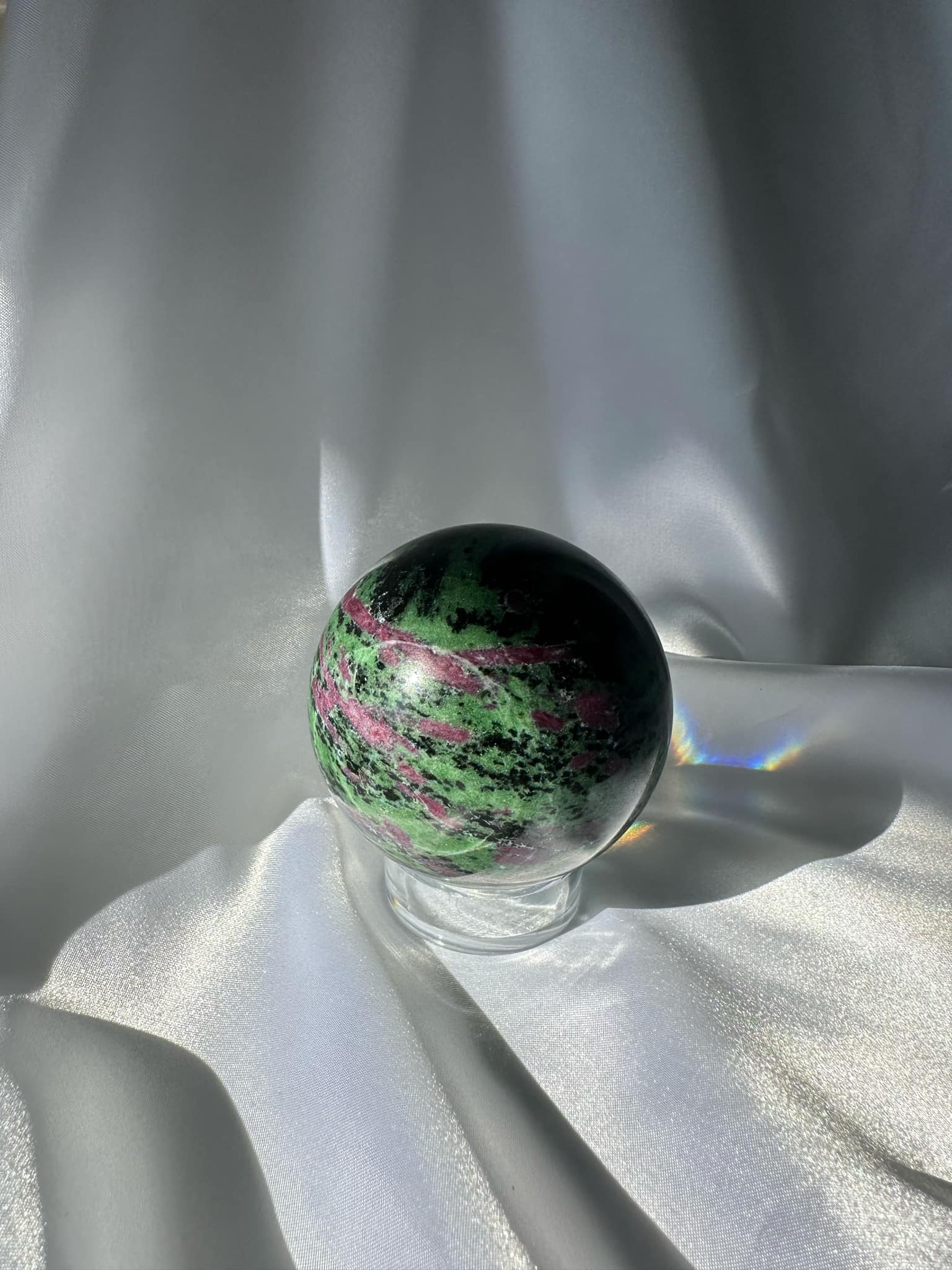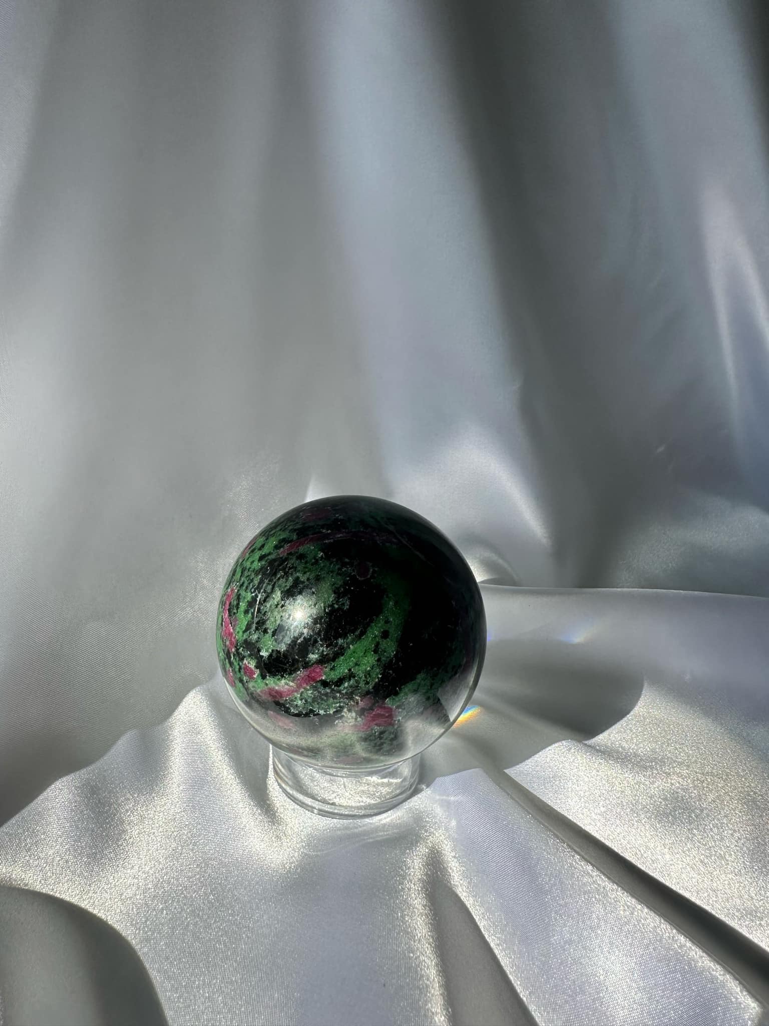 Ruby Zoisite Sphere is associated with a range of positive qualities, including vitality, passion, and spiritual growth.