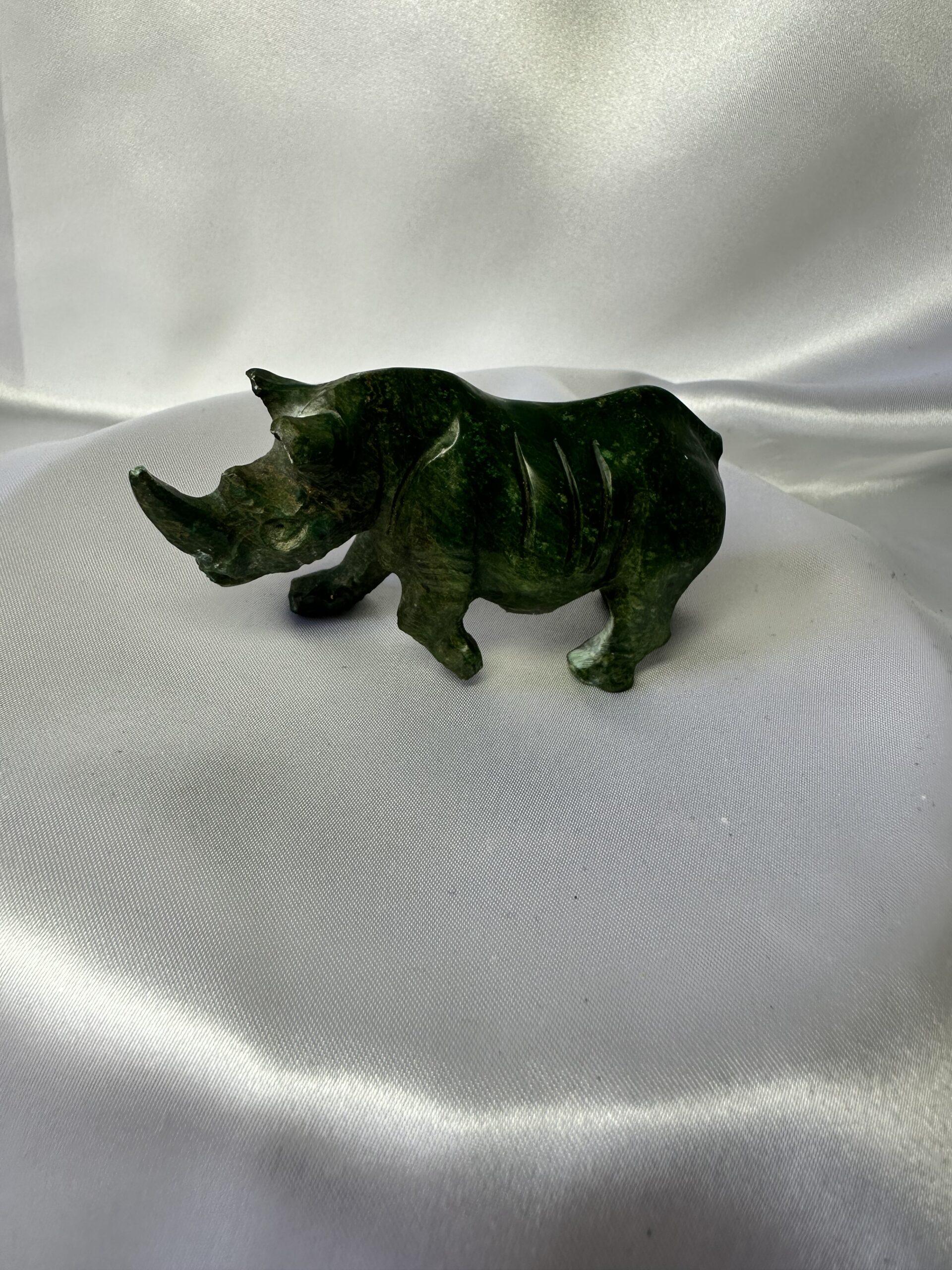 Serpentine Rhino symbolises the lushness of nature and is often associated with healing, balance, and harmony. The green energy of Serpentine is believed to help release emotional blockages, support personal growth, and invite a sense of calm and tranquillity into one’s life.