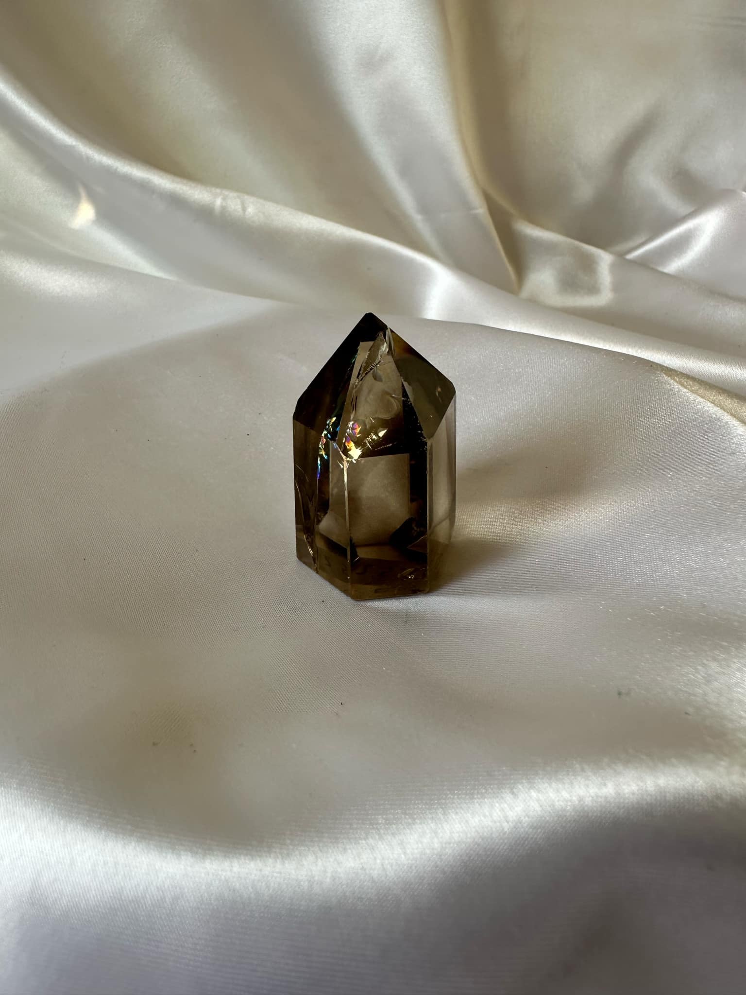 Smokey Citrine/Quartz Tower enhances mental clarity, fosters positivity and aids in manifesting desires. It’s healing properties include grounding and protective energy, relieving stress and anxiety, promoting positive thoughts and actions, and enhancing intuition and manifestation. It is also believed to remove negative energy, allows the release of unwanted vibrations and attracts financial prosperity and protection.