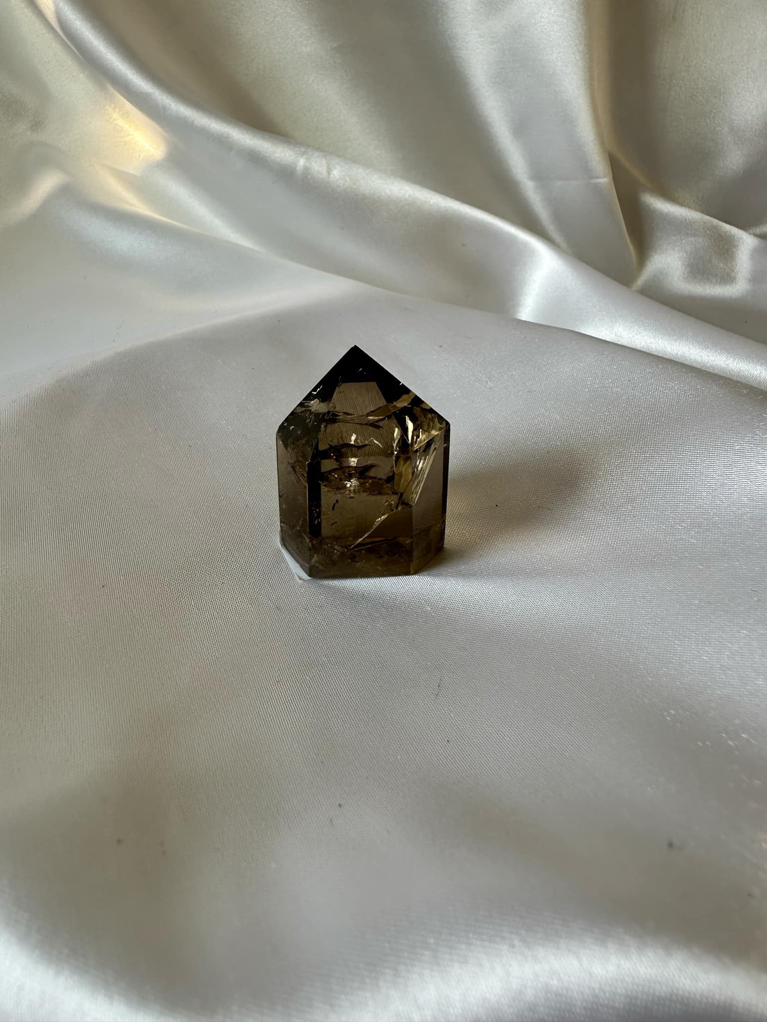 Smokey Citrine/Quartz Tower enhances mental clarity, fosters positivity and aids in manifesting desires. It’s healing properties include grounding and protective energy, relieving stress and anxiety, promoting positive thoughts and actions, and enhancing intuition and manifestation. It is also believed to remove negative energy, allows the release of unwanted vibrations and attracts financial prosperity and protection.